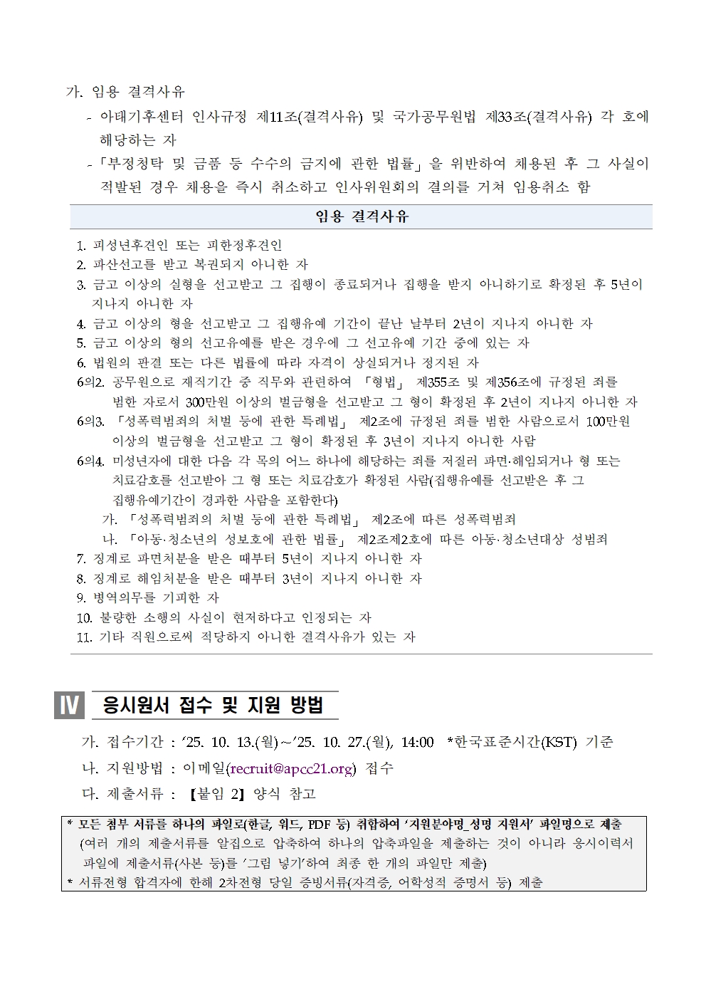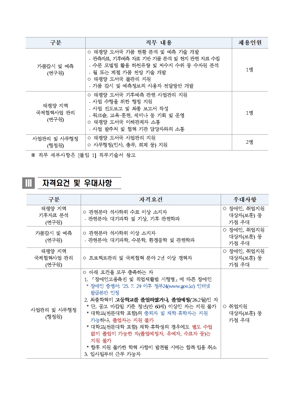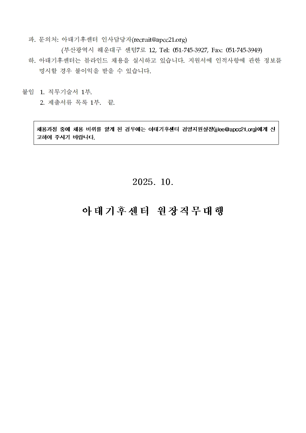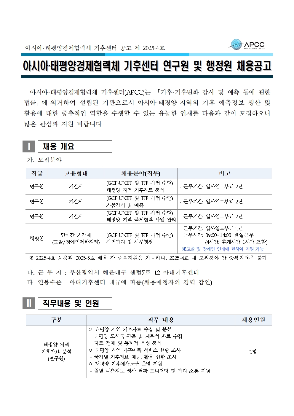 아시아·태평양경제협력체 기후센터 연구원 및 행정원 채용 공고(2025-04)