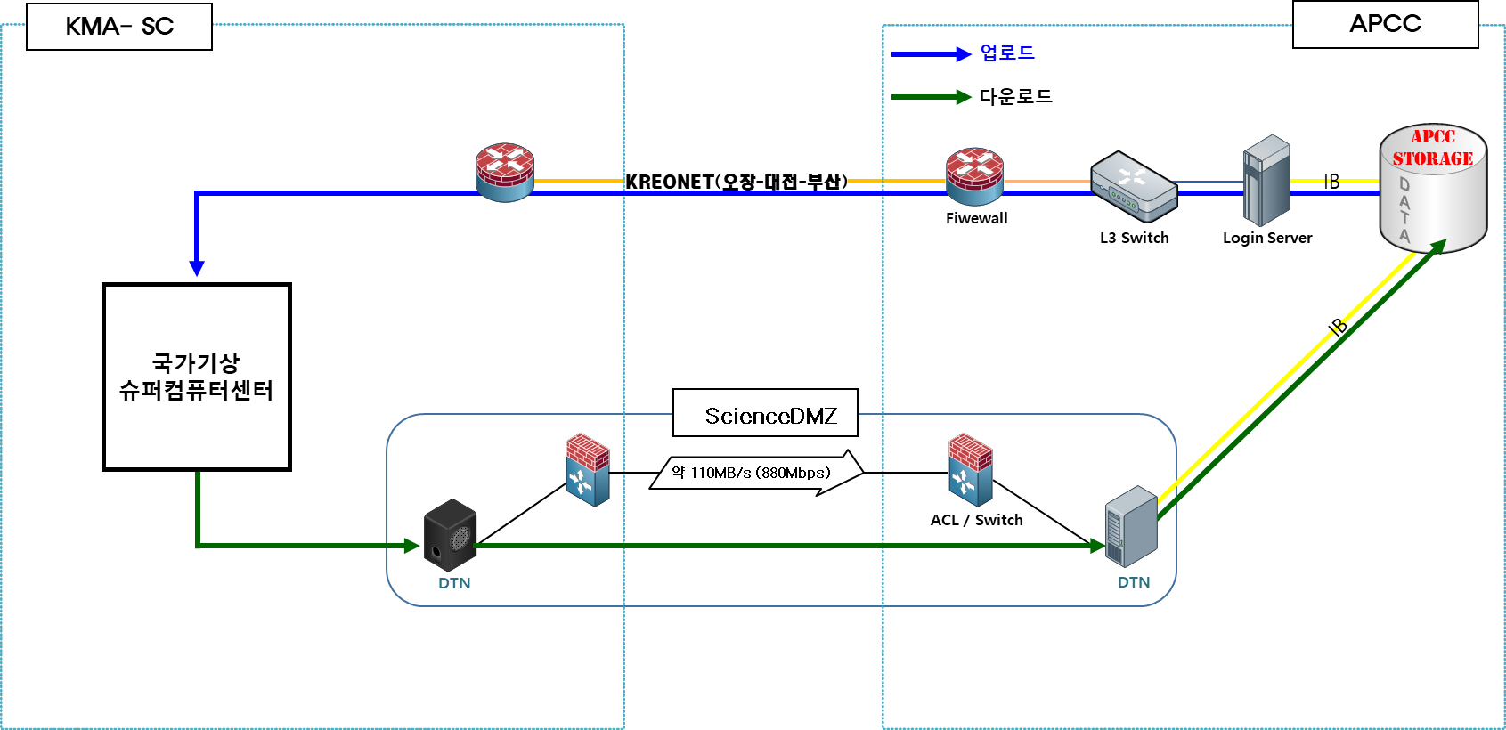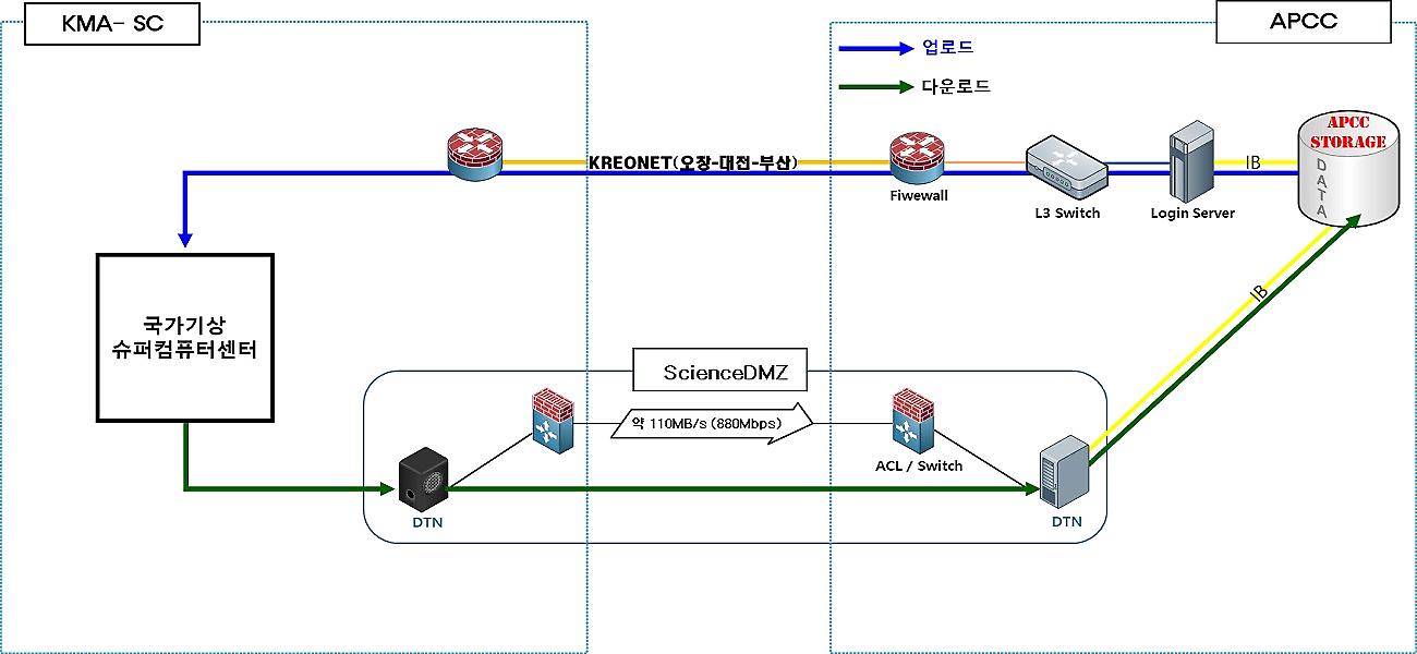 이러한 차원에서 APEC기후센터와 기상청 국가기상슈퍼컴퓨터센터는 대용량 장기기후 예보자료의 초고속 전송이 가능하도록 국내에서 최초로 양 기관 간에 사이언스 DMZ 서비스 환경을 구축하였다.