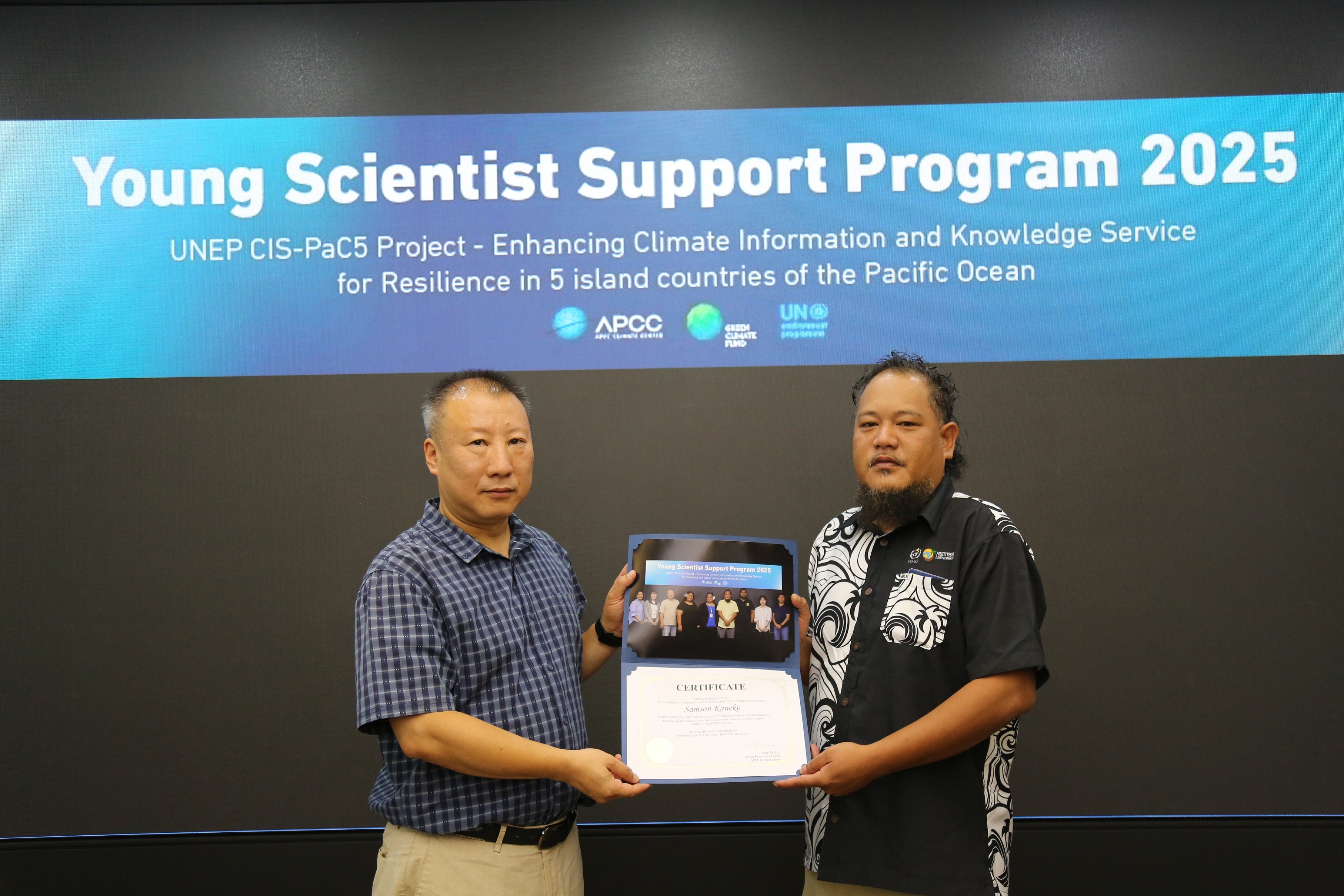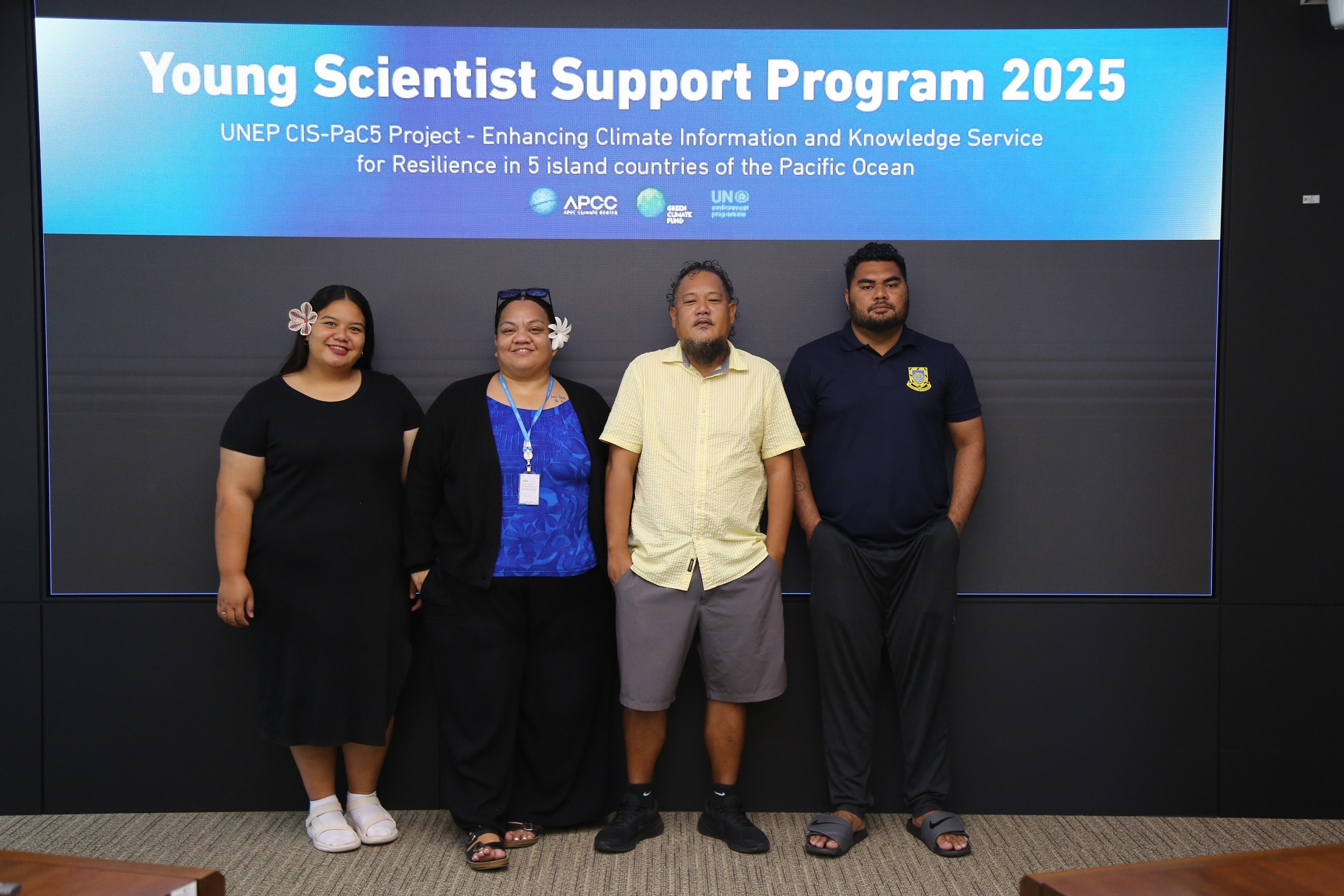 아시아·태평양경제협력체 기후센터(APCC)는 *4개 태평양 도서국 기상청의 기후예측 실무 직원 4명을 부산 해운대에 있는 APCC로 초청해 기후연구·실무 관련 교육·실습 기회를 제공하는 “2025년도 태평양 도서국 젊은 과학자 지원 사업”을 2025년 9월 3일(수)부터 9월 30일(화)까지 실시하고 성공적으로 마쳤다. 이번* 2025년도 태평양 도서국 젊은 과학자 지원사업에 참가한 4개 태평양 도서국은 쿡 제도, 마셜제도 공화국, 투발루, 니우에이다.