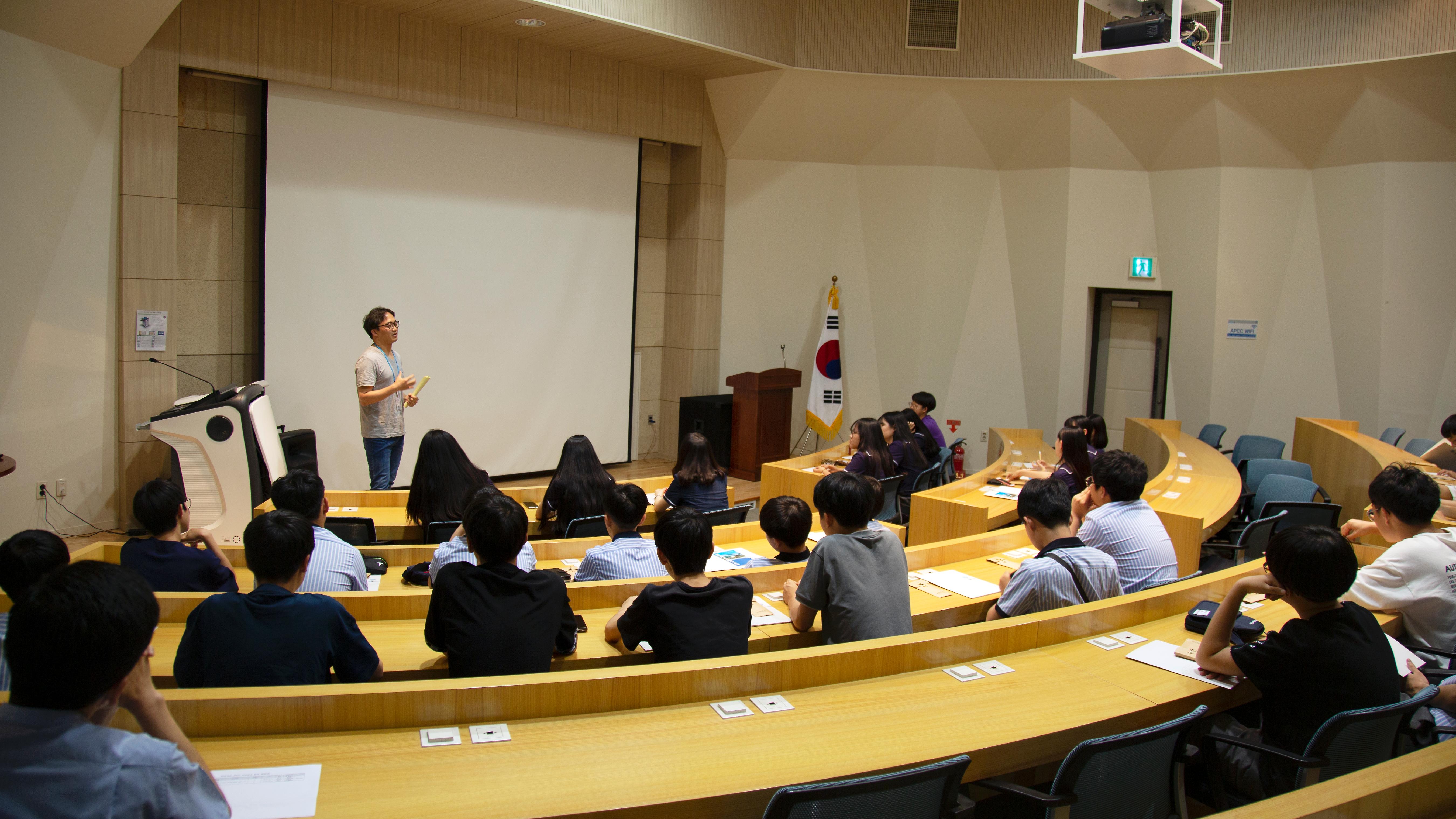 이날 진로교육특강에 참가한 학생들은 과학자와 연구원이 되기 위해 필요한 소양과 자질, 그리고 과학적 탐구·연구가 가지는 사회적 의미와 사회 발전 기여도에 대해 APEC기후센터의 김대하 박사로부터 소개받았다.