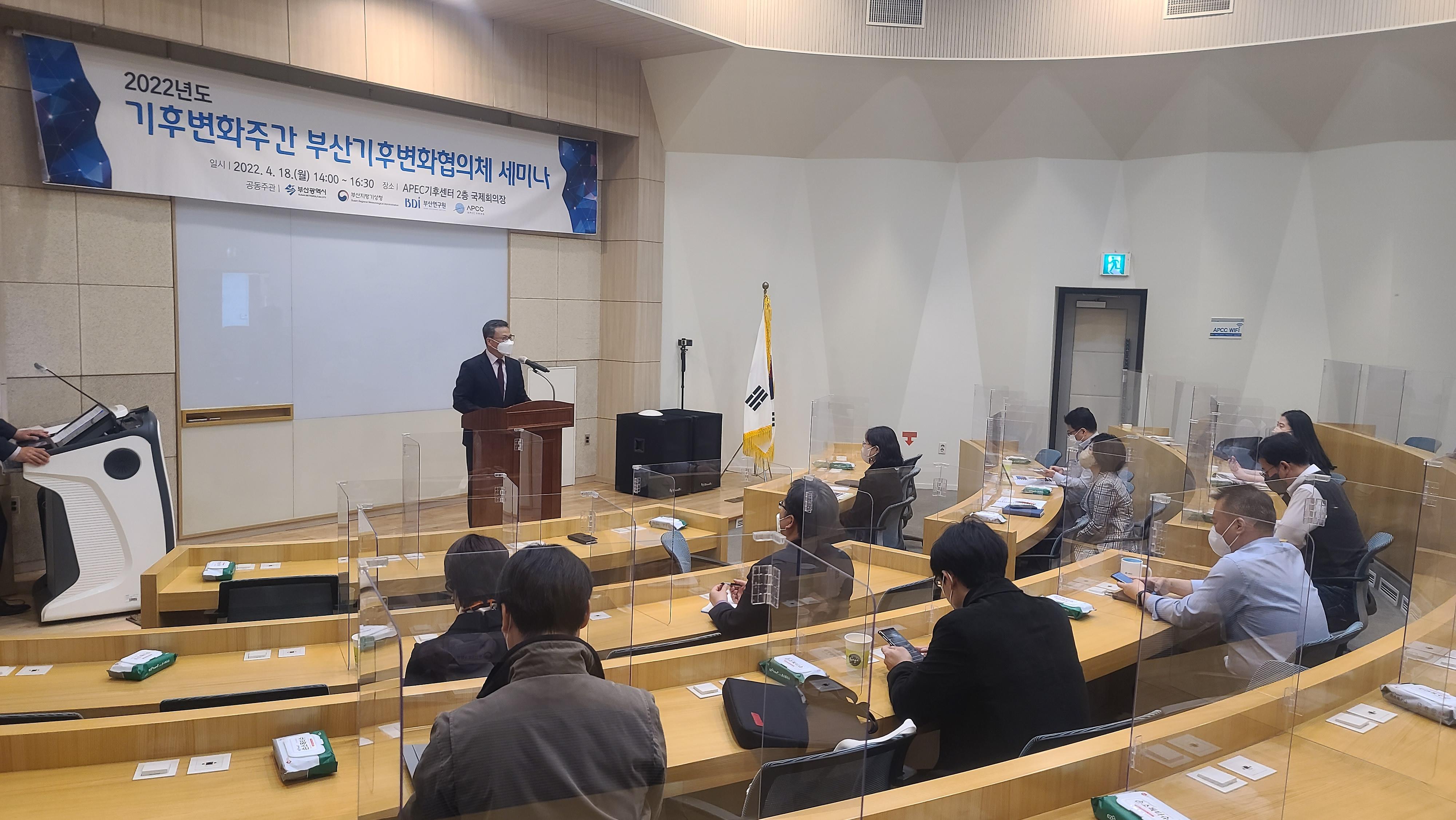 부산광역시, 부산지방기상청, 부산연구원, 그리고 APEC기후센터(APCC)가 참여하고 있는 부산기후변화협의체는 2022년 4월 18일(월) 부산 해운대 APEC기후센터 국제회의장에서 ‘2022년도 기후변화 주간 부산기후변화협의체 세미나’를 개최하였다.