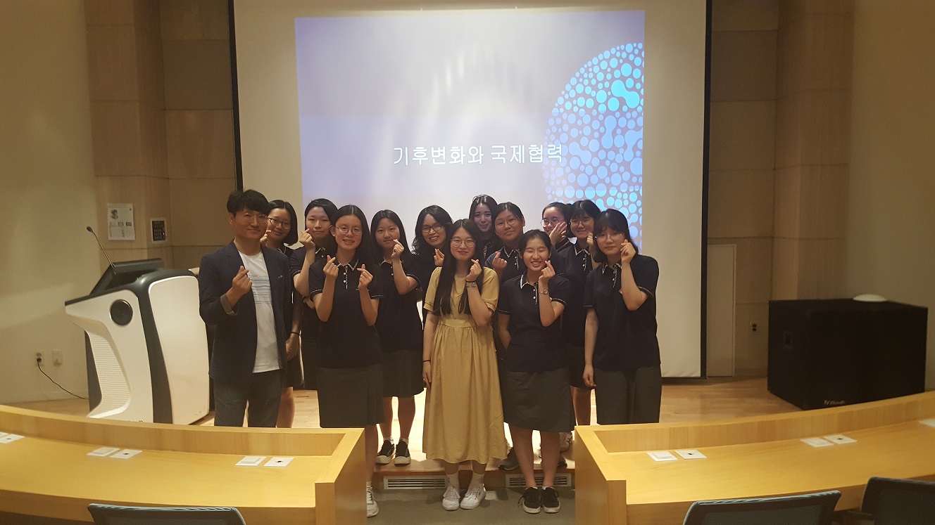 APEC기후센터(APCC) 기후분석과 전종안 박사는 지난 2019년 7월 10일 센터를 방문한 부산 국제외국어고등학교 학생 10명을 대상으로 '기후와 기후변화가 우리생활에 끼칠 영향은'을 주제로 진로교육 특강을 실시하였다.