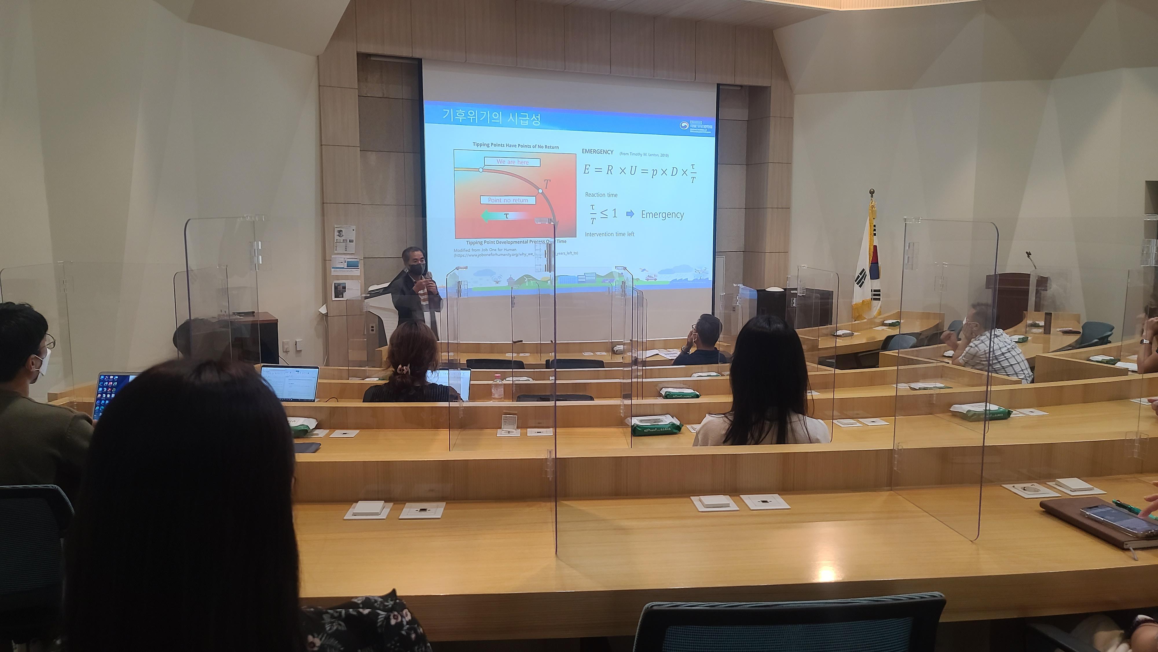 이날 세미나에서 주상원 전 국립기상과학원장은 ‘기후위기 대응을 위한 IG3IS (Integrated Global Greenhouse Gas Information System) 역할’에 관해 발표하였다.