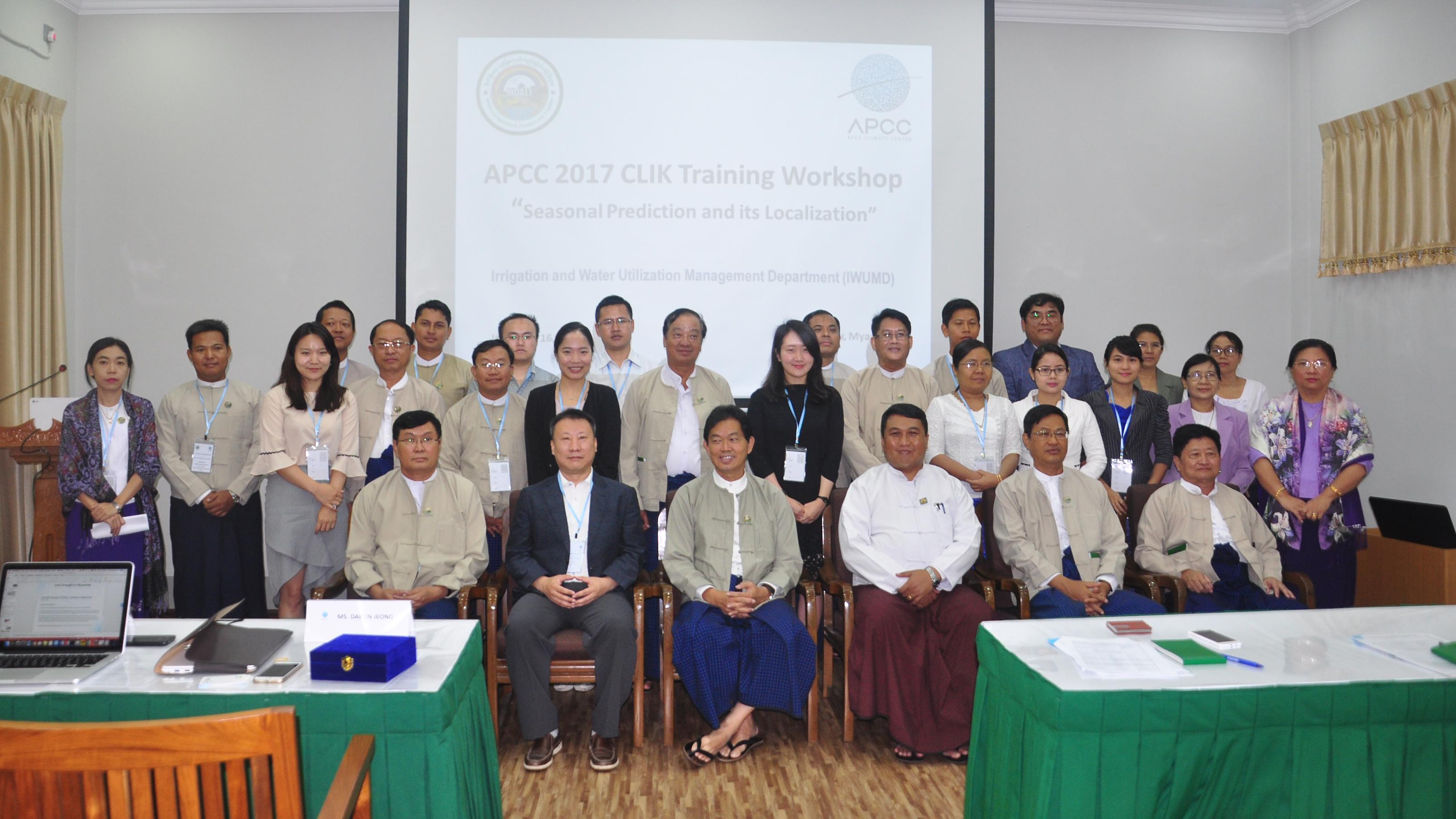 APEC 기후센터(원장 정홍상, APCC)는 동남아시아 및 인근국가의 기후예측 인력을 대상으로 센터가 개발·운영하고 있는 수요자 맞춤형 온라인 장기(계절)기후 예측정보 시스템인 클릭(CLIK)의 활용을 도모하기 위한 ‘2017년도 찾아가는 해외현지 클릭(CLIK: Climate Information Tool-Kit) 교육·훈련 워크숍’을 2017년 6월 7일(수)부터 9일(금)까지 ‘태국 기상청 내 교육장’에서, 그리고 2017년 6월 14일(수)부터 16일(금)까지 ‘미얀마의 관개용수 활용·관리국 내 교육장’에서 각각 실시하였다.