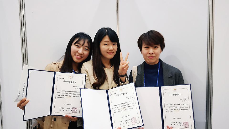 APEC기후센터의 기후예측팀의 김미아 연구원, 기후연구팀의 정여민 연구원과 정유림 연구원 등 3명의 연구원들이 지난 2017년 10월 26일(목) 부산 벡스코(BEXCO)에서 열린 2017 한국기상학회 총회 및 가을학술 대회의 포스터 발표에서 동시에 ‘우수논문발표상’을 수상했다.