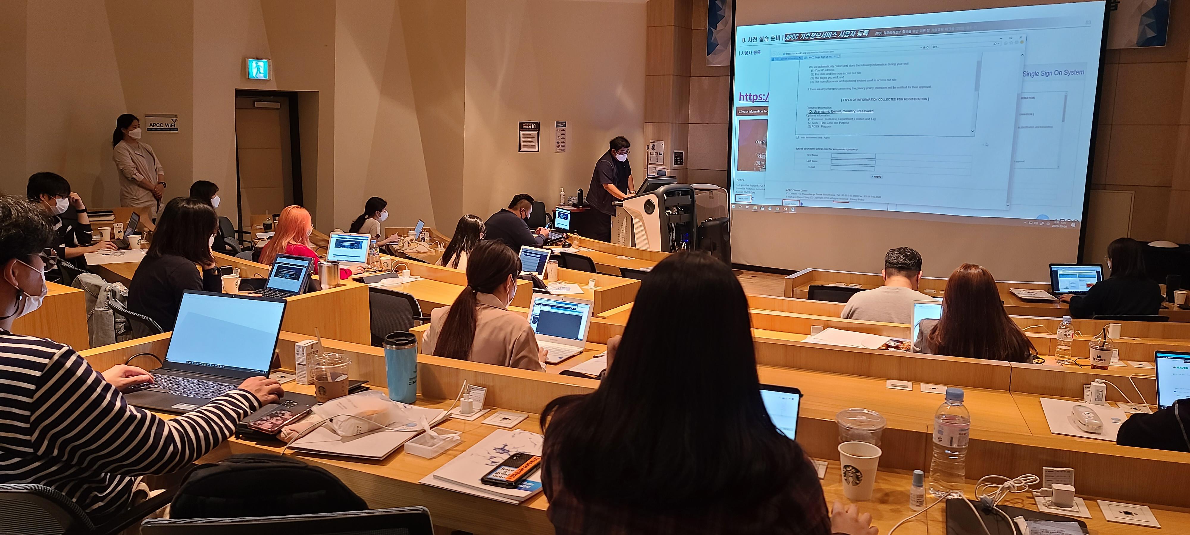 이후 APEC기후센터가 홈페이지에서 제공하는 기후예측정보 소개에 이어 참가자들은 기후정보 이용자가 인터넷에 접속해 손쉽게 원하는 형태의 기후예측정보를 생산할 수 있는 수요자 맞춤형 온라인 기후정보 응용도구인 '클릭’을 직접 실습했다.