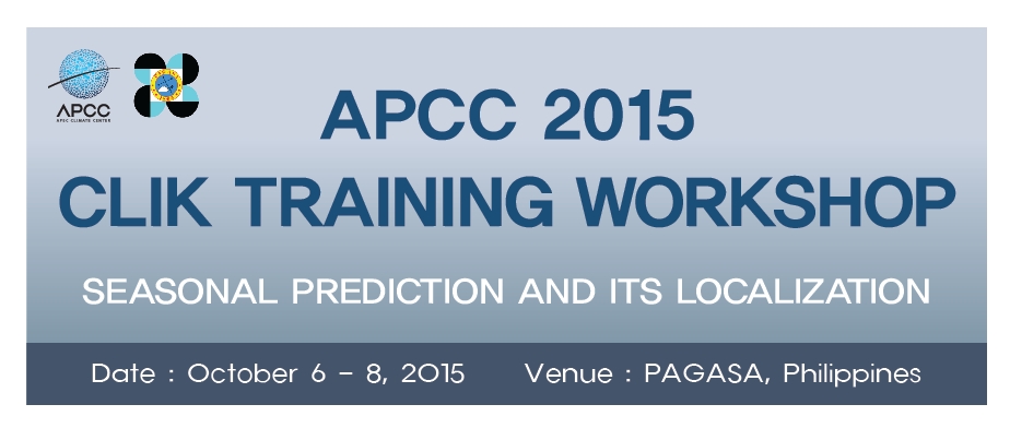 Training Workshop은 1년에 두 번 개도국의 기상 관련 과학자 및 전문가들을 초청하여 진행하는 교육 프로그램으로서 이번 워크숍은 New CLIK 활용을 통한 계절예측 및 지역화라는 주제를 가지고 진행된다. 이 프로그램은 필리핀 및 주변국(태국, 베트남) 기상청 실무진들의 기후예측관련 교육 및 New CLIK 교육을 통해 활용이 용이한 기후예측 정보 생산 및 활용을 지원하고 APEC 내 동남아시아 국가 기상청 실무자들의 기후변화 대응 역량강화 및 국가 기후예측 분야의 전문 인력 양성에 기여하기 위해 개최하게 되었다.
