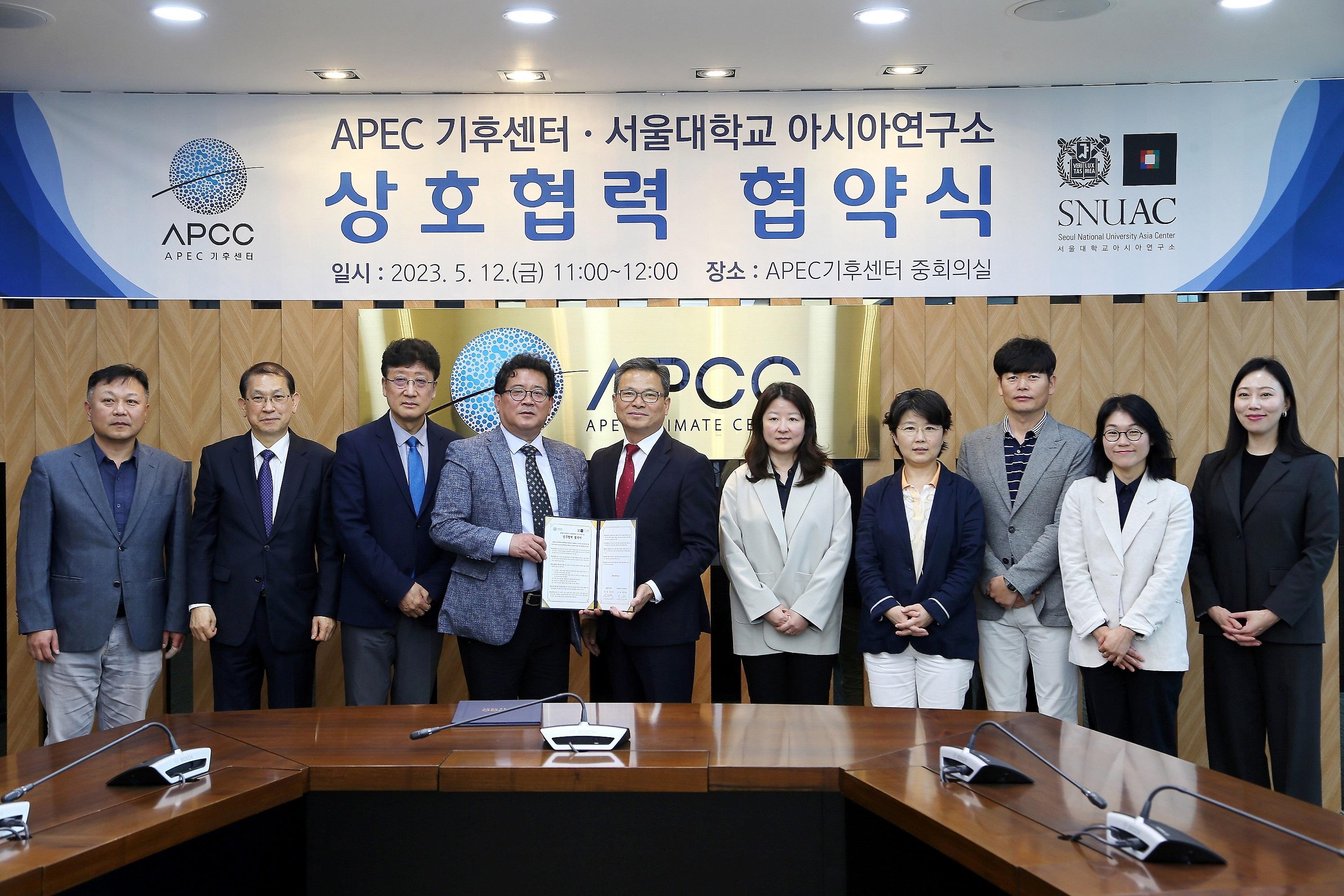 APCC and Seoul National University Asia Center(SNUAC) signed MOU to respond to climate change and promote sustainable growth in Asia at APCC building in Busan, Korea on May 12, 2023.