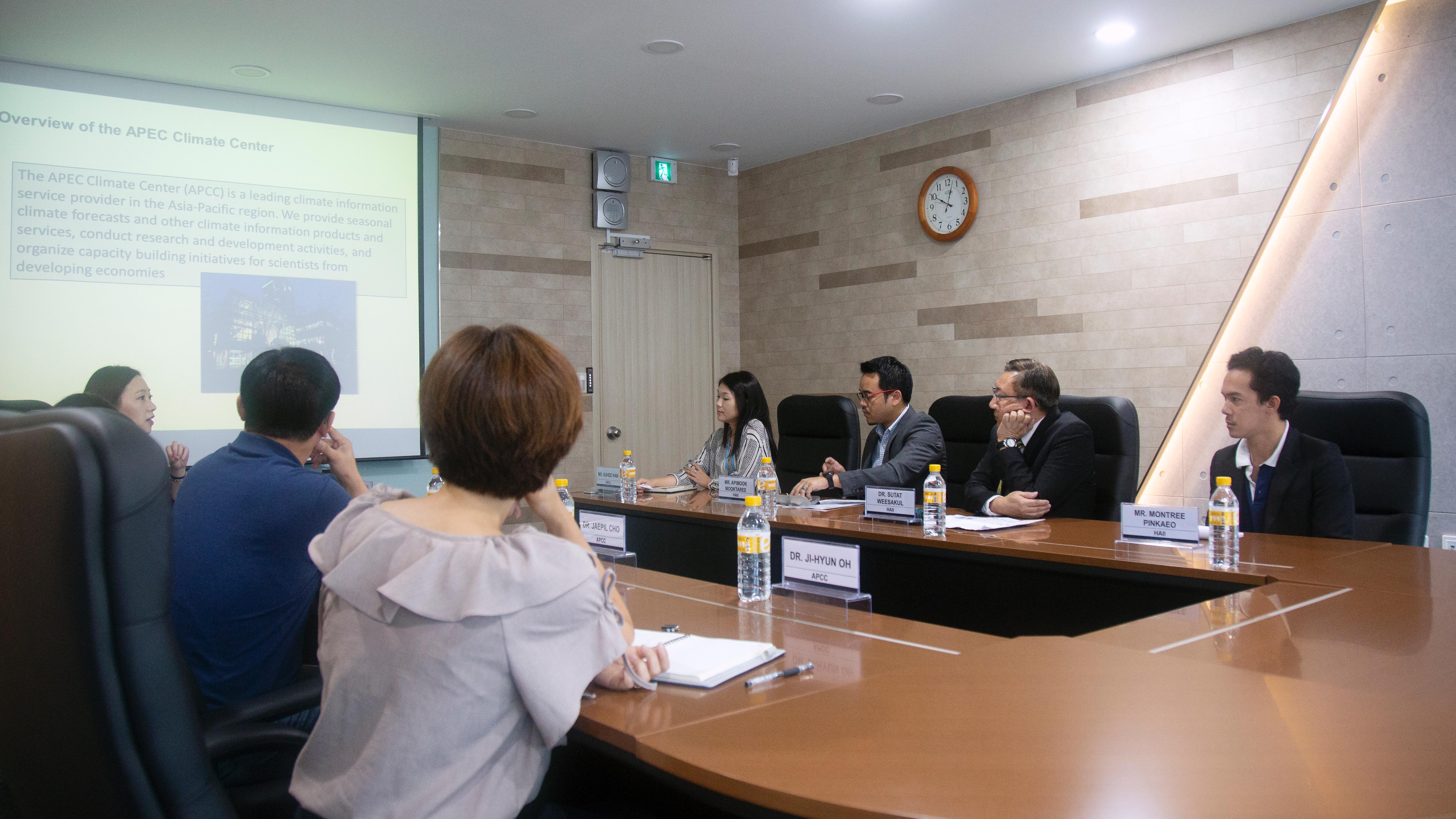 APEC기후센터(APCC)는 지난 2018년 9월 7일(금) 부산 해운대 센터본관에서 태국의 농업수문정보연구원(HAII)과 양 기관간의 향후 협력을 모색하기 위한 “APCC-HAII 기후정보 활용을 위한 협력회의”를 개최하였다.