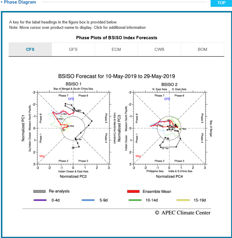 APEC 기후센터는 지난 2019년 5월 1일부터 센터의 홈페이지를 통해 2019년도 여름철 계절 내 진동 예측정보(BSISO) 제공 서비스를 개시하였다.