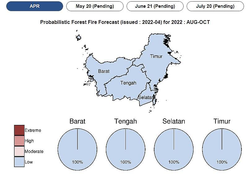 APEC 기후센터는 홈페이지(https://apcc21.org/ser/sea.do?lang=en)를 통해 “2022년도 인도네시아 보르네오섬 산불 조기경보 예측” 서비스를 2022년 4월 20일부터 개시하였다.
