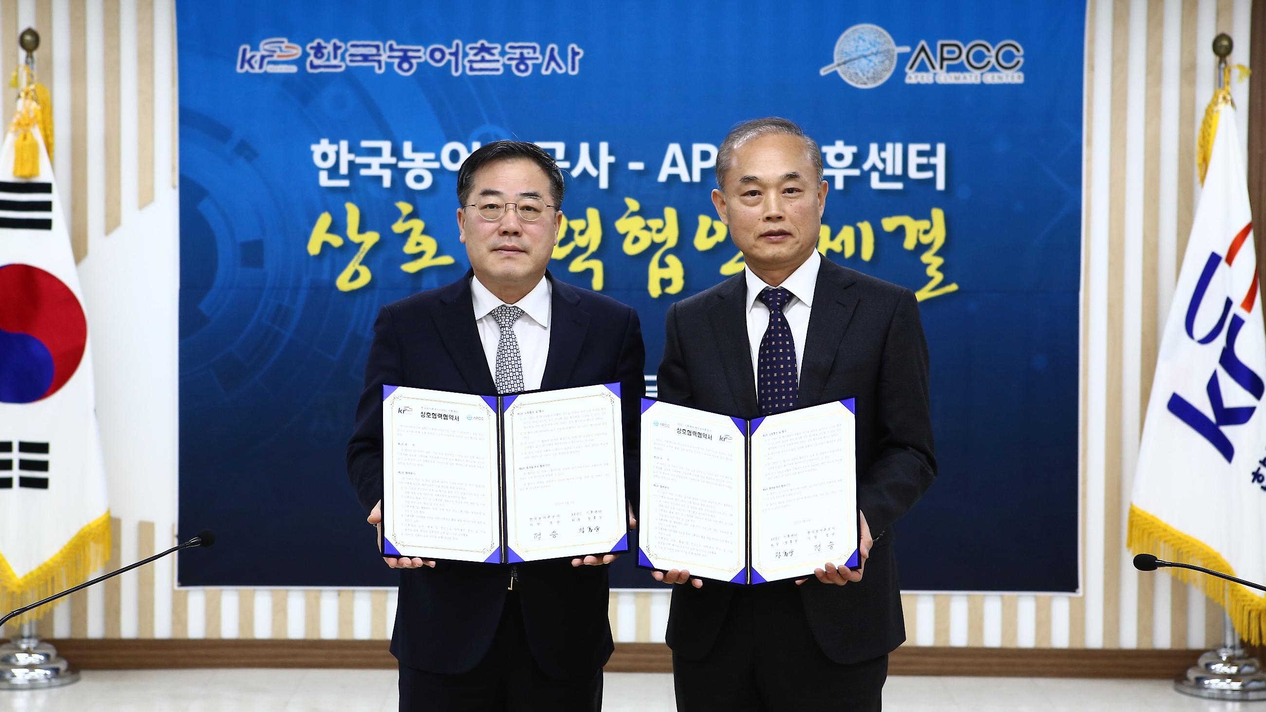 APEC기후센터와 한국농어촌공사간의 업무협약 체결로 양 기관은 첫째로 기후변화에 대응할 수 있는 농촌지역의 건설을 위해 협력하고, 둘째로 우리나라와 개도국들의 기후변화 대응능력 향상을 위해 국내·해외사업에 공동으로 참여하며, 셋째로 국제 교육·연수 프로그램을 공동으로 개발·운영함과 동시에 양 기관 전문가들의 교류협력을 추진하며, 넷째로 농업부문의 기후변화 대응과 관련된 연구·사업 추진 시 양 기관의 시설을 공동으로 활용할 계획이다.