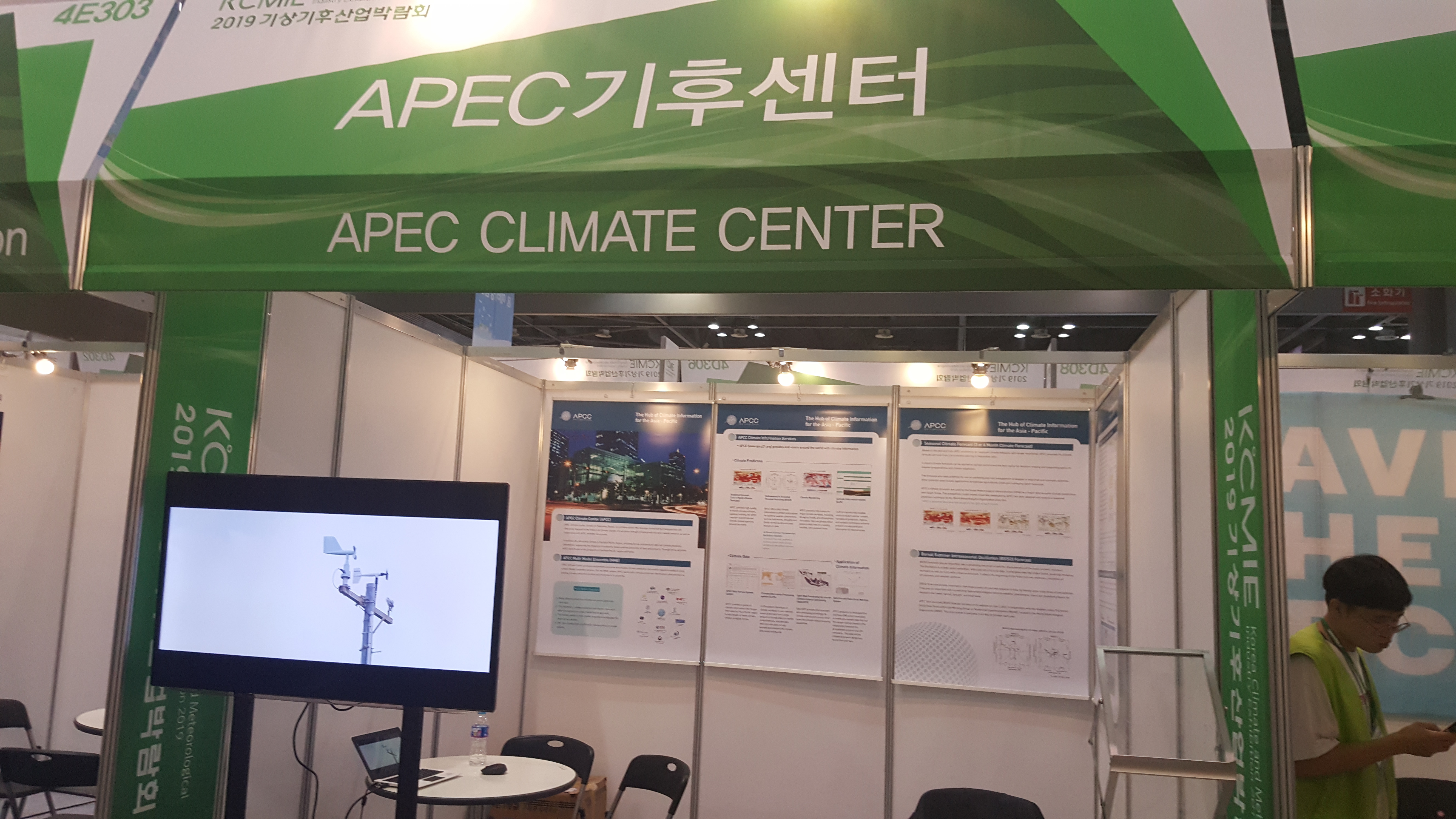 APEC기후센터(APCC)는 지난 2019년 9월 25일(수)부터 27일(금)까지 3일간 경기도 고양시 킨텍스(KINTEX)에서 열린 2019년 기상기후산업박람회에 참가해 APCC의 연구·사업 성과홍보를 위한 전시부스를 운영하였다.