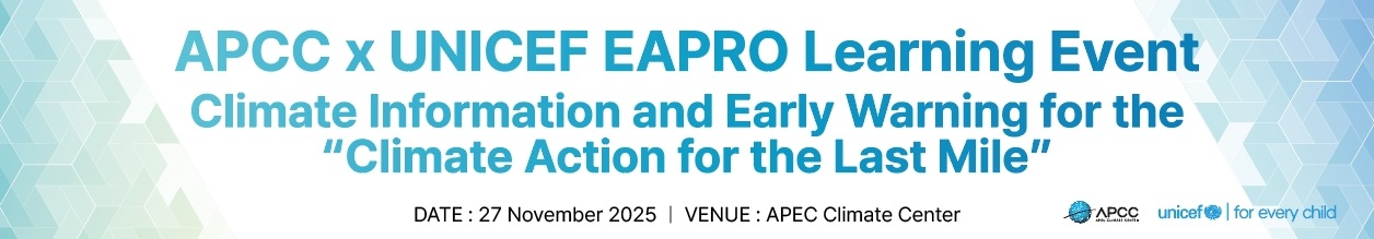 아시아·태평양경제협력체 기후센터(APCC)는 유엔아동기금(UNICEF)과 ‘APCC-UNICEF 동아시아태평양지역사무소(EAPRO) 지식공유 행사(APCC-UNICEF EAPRO Learning Event)’를 2025년 11월 27일 APCC 건물 내 중회의실에서 양 기관의 관계자들이 참석한 가운데 가졌다.